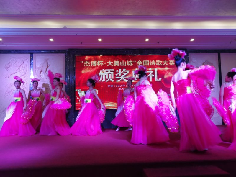 2018 年12月22日,由江西杰博人力資源有限公司、德興市委宣傳部、德興萬(wàn)村溫泉養心谷、德興市聚遠詩(shī)社、德興市職業(yè)中專(zhuān)學(xué)校、德興市文聯(lián)聯(lián)合主辦的2018著(zhù)名作家詩(shī)人看德興首屆“杰博杯—魅力山城”全國詩(shī)歌大賽頒獎晚會(huì )在德興大酒店舉行。